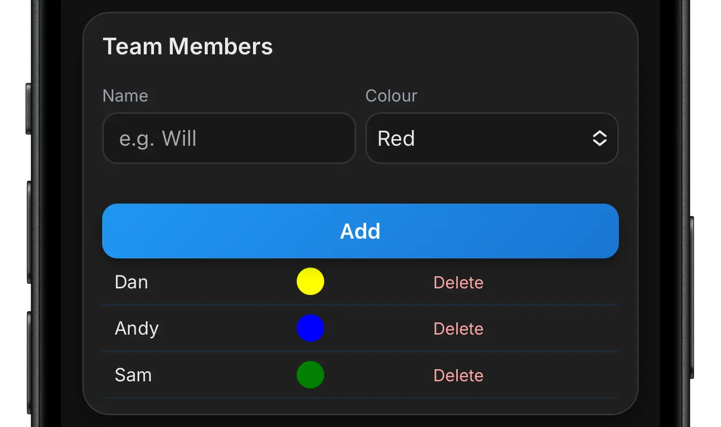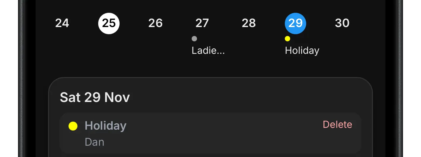 The colour will be used across the Team Hub for Notes, Holidays, and notifications, making it easy to see who each item belongs to.