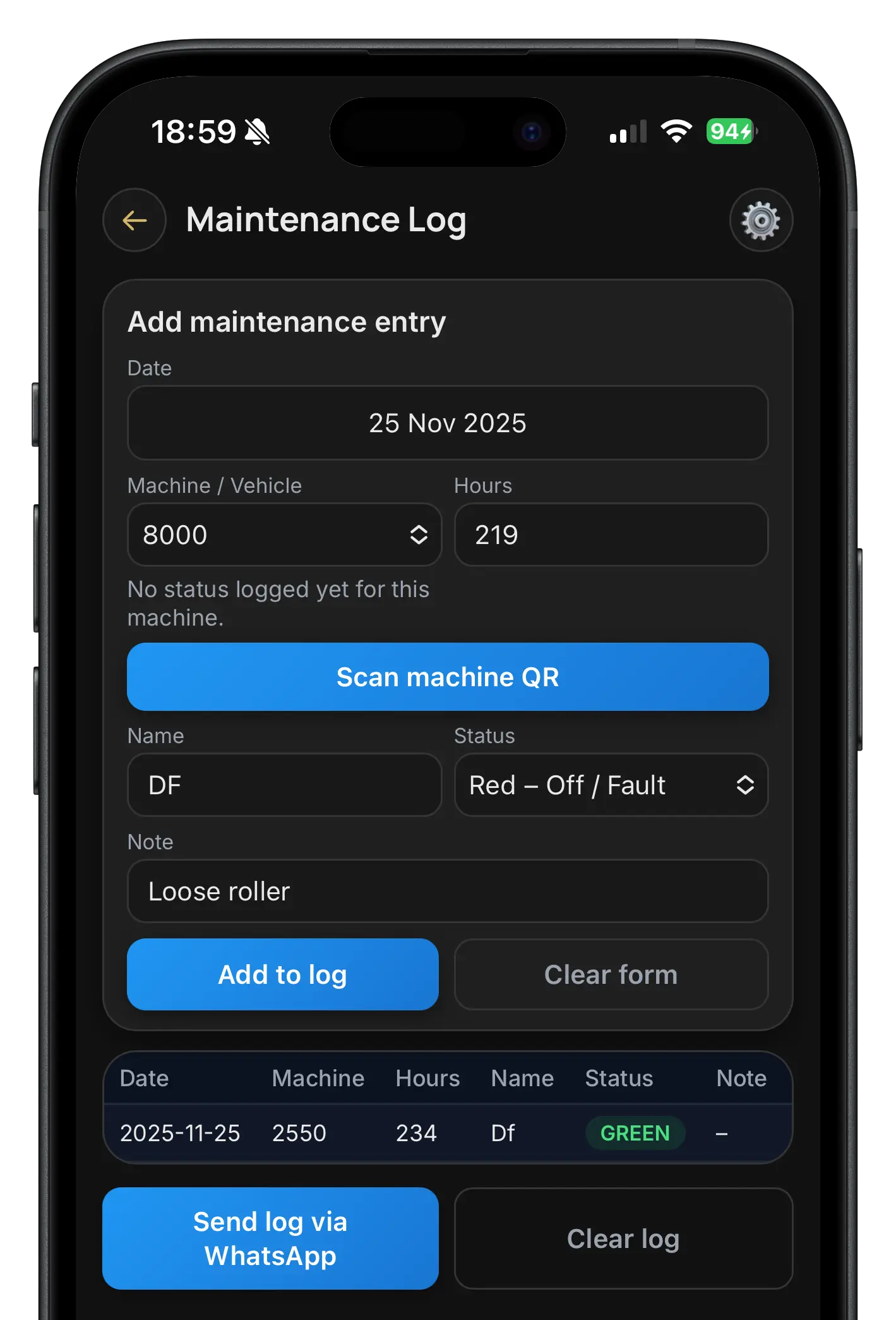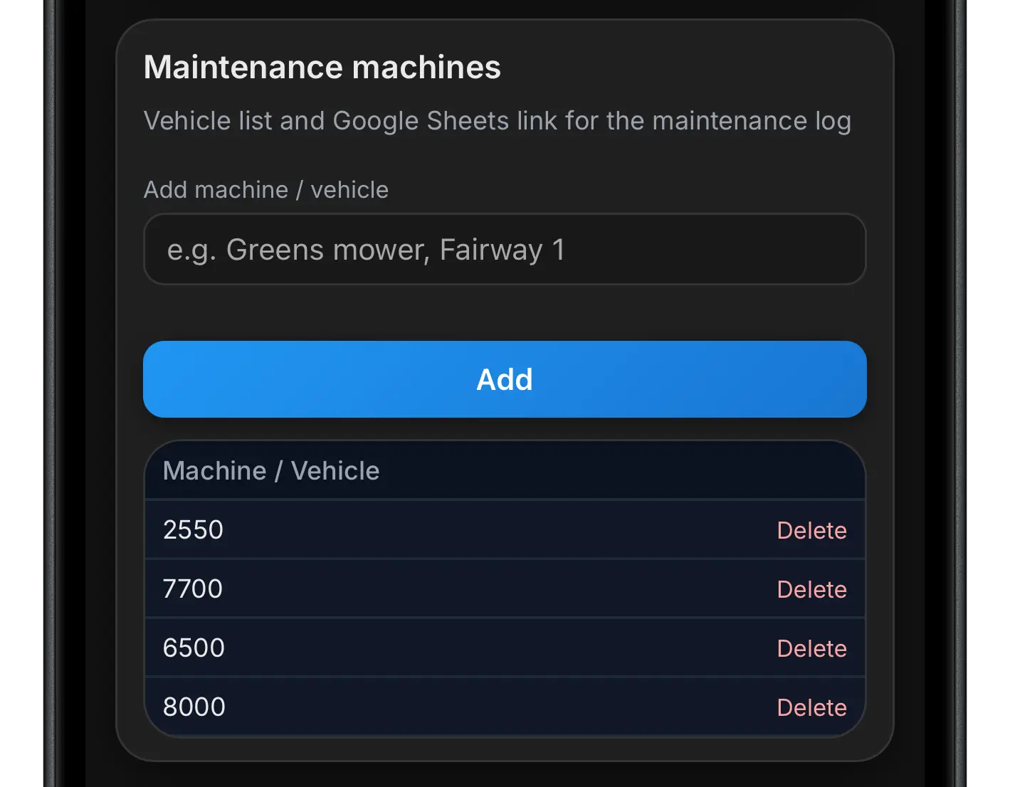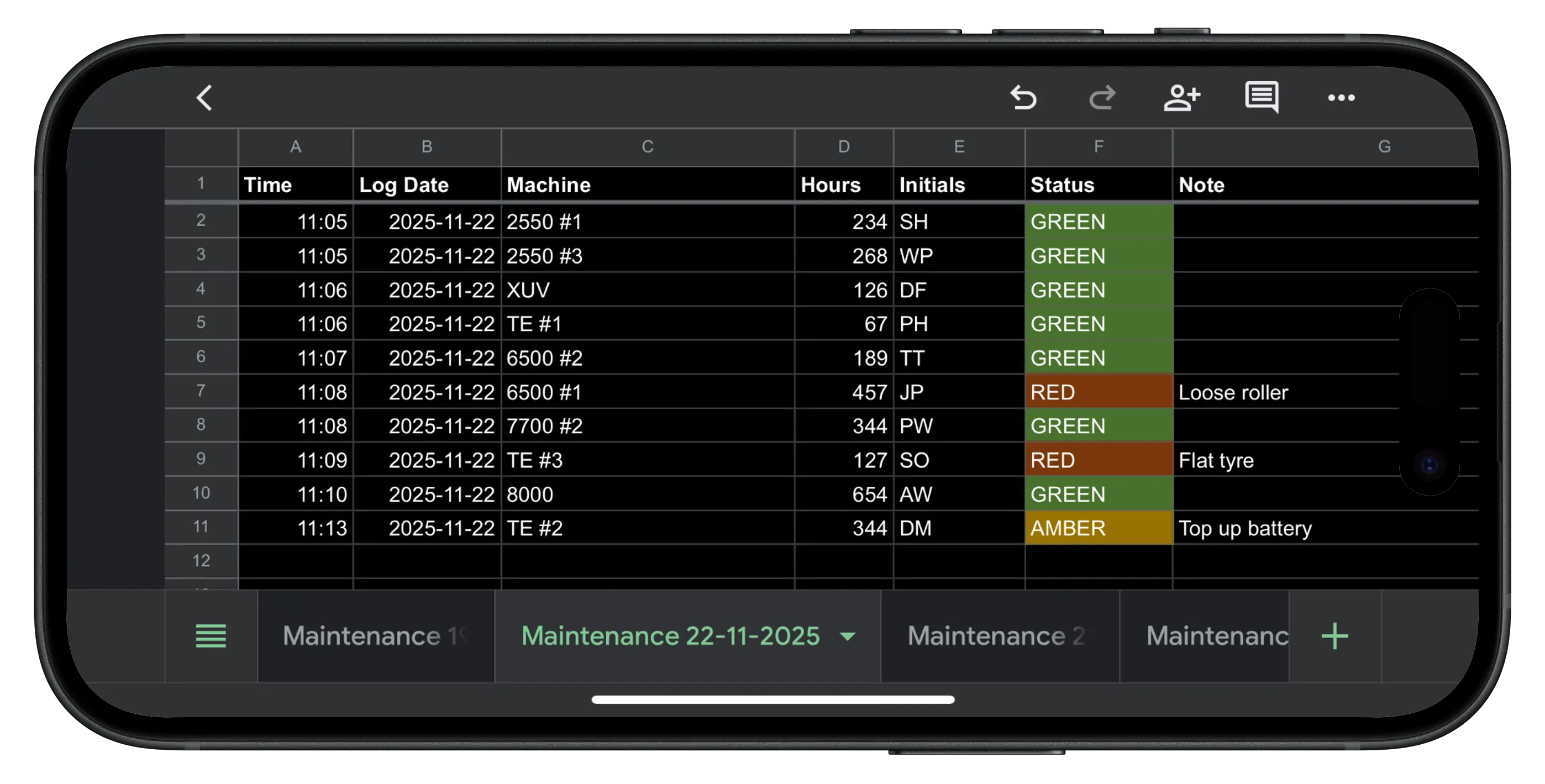 This allows all maintenance entries to be automatically sent to your central log sheet, giving your team shared access to service history.